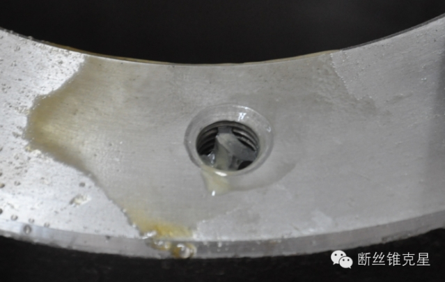 能看到,絲錐中線已經(jīng)被打穿,絲錐松動