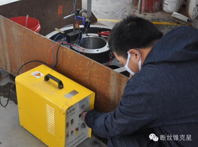是不是很震撼,不過難不倒我們,工作人員調(diào)整便攜式火花機,做好準備工作