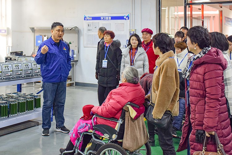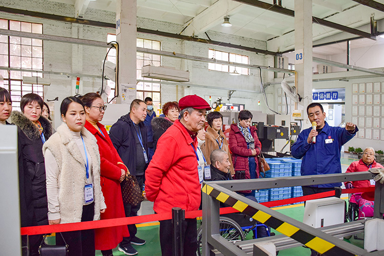三位公司高管帶領員工家屬們在機加車間、裝配車間、辦公樓參觀。