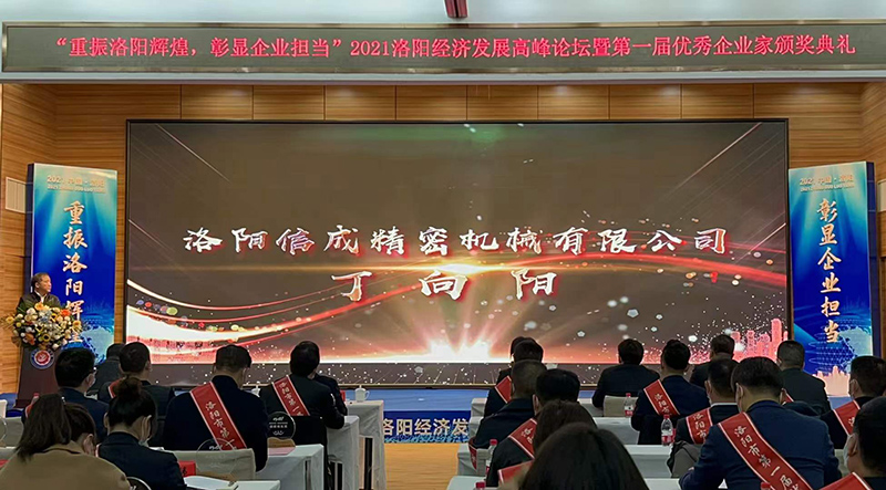 12月9日上午,洛陽(yáng)信成精密機(jī)械有限公司董事長(zhǎng)丁向陽(yáng)先生出席“洛陽(yáng)市企業(yè)家”頒獎(jiǎng)典禮,榮獲“創(chuàng)新成長(zhǎng)型企業(yè)家”殊榮。