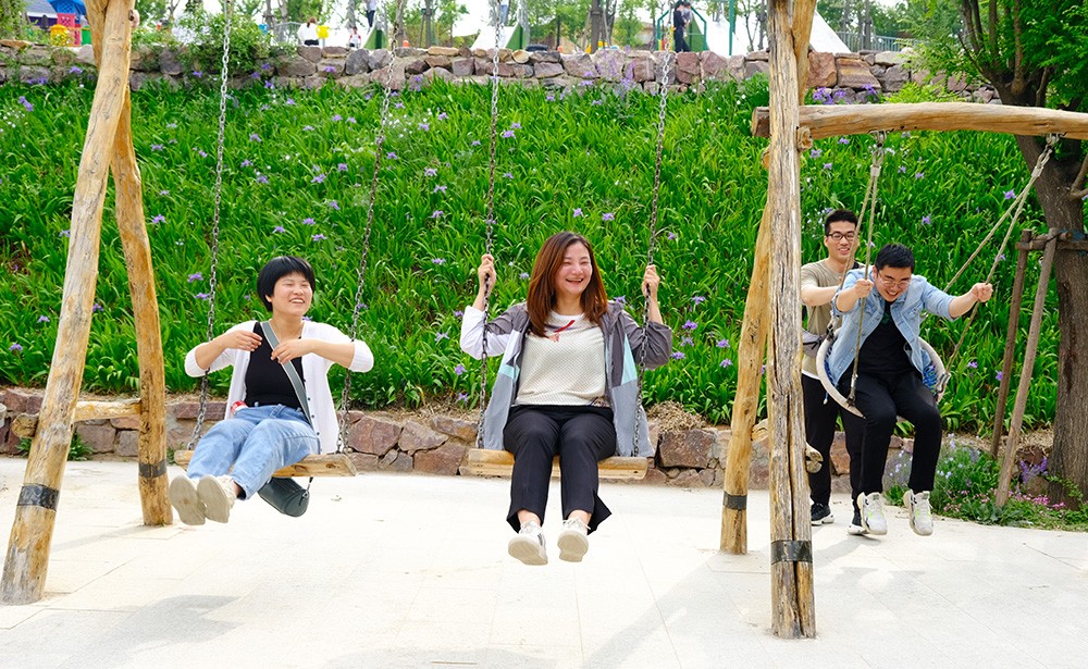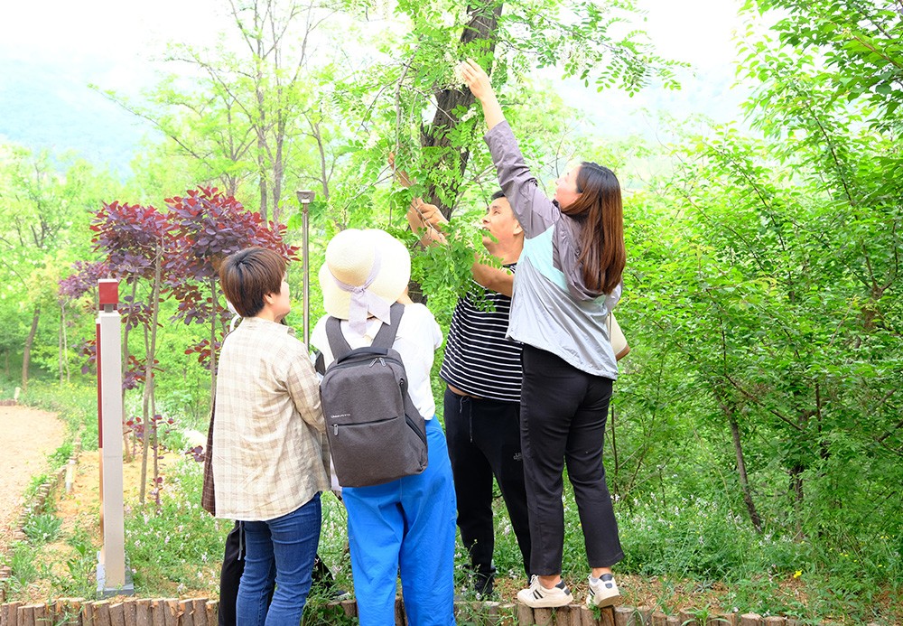 自由活動時間里,三五成群游玩小索道,滑梯,尤其是漫山遍野的槐花,空氣中彌漫著陣陣清香,盡情的欣賞大自然之美。