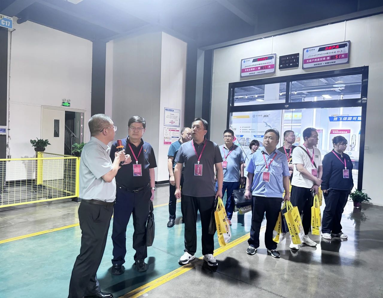 座談會后,與會嘉賓根據(jù)參觀證顏色,分為五隊,在五色小旗引導(dǎo)下,分批次參觀了綜合樓展廳、裝配車間機電產(chǎn)品線、銑加工車間、速飛信激光智能裝備有限公司、車加工車間核心生產(chǎn)區(qū)域。每個參觀點均設(shè)有專職講解員、演示員,詳細介紹了公司情況,讓嘉賓們短時間內(nèi),對信成公司產(chǎn)品使用、生產(chǎn)管理、技術(shù)實力和生產(chǎn)規(guī)模有了更加直觀的了解。