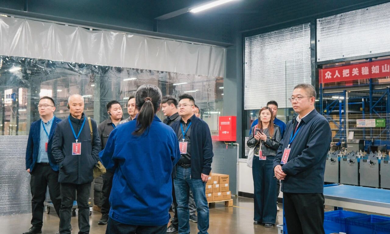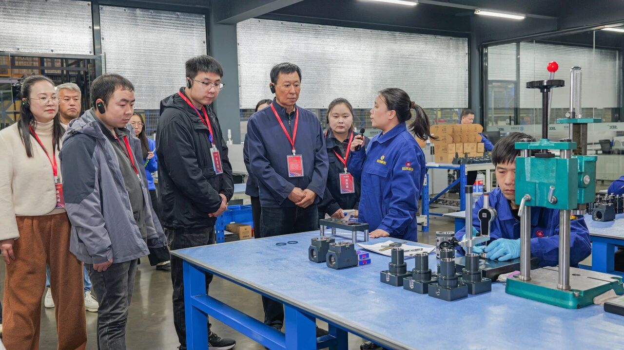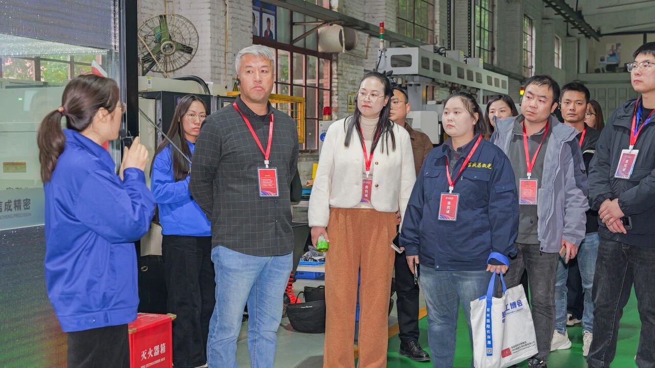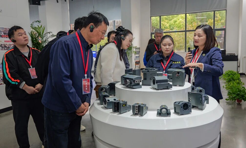 在丁董與袁總帶領下,嘉賓們分為紅、藍兩隊,有序參觀了公司銑加工車間、車床刀座柔性生產線、裝配車間機電產品線、檢測檢驗中心及車加工車間。